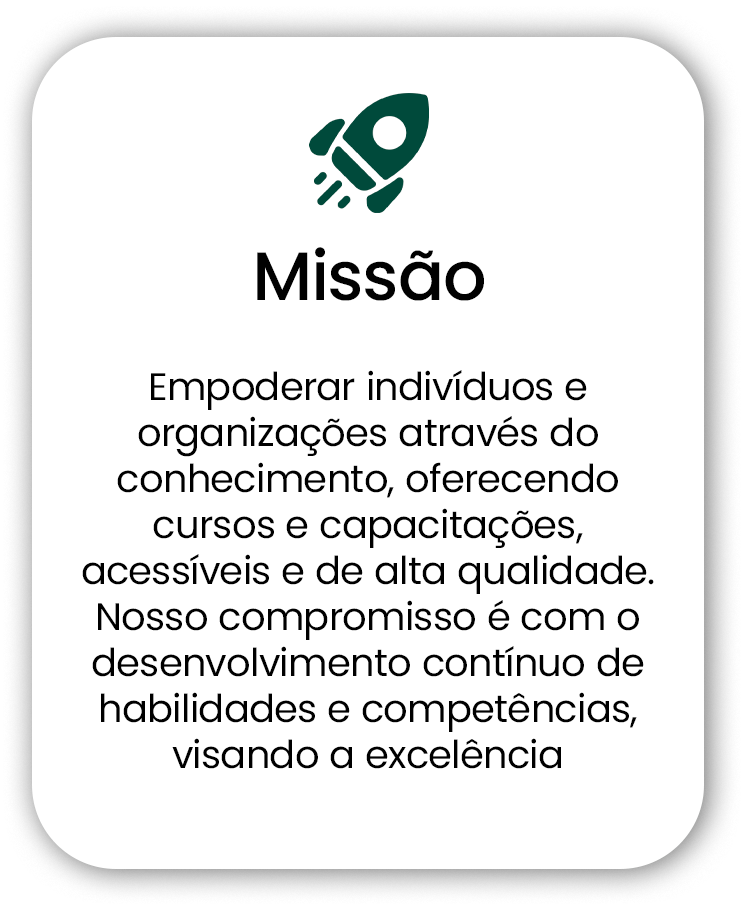 Nossa abordagem é centrada no público, entendendo e atendendo às suas necessidades individuais, para que possam alcançar seus objetivos pessoais e profissionais. Com uma metodologia inovadora, conteúdo atualizado e instrutores especializados em suas áreas, garantimos uma experiência de aprendizado dinâmica, prática e relevante.